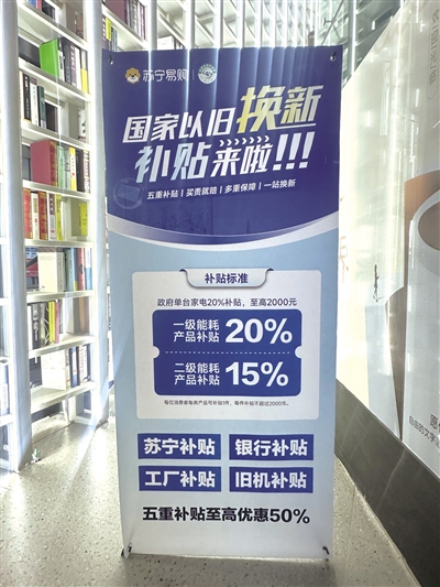 中山西路苏宁易购图书大厦店店长刘艳红说,国补政策出台后,到店咨询家电以旧换新的消费者络绎不绝,日均接待量相比之前增长近3倍,销售额也比去年同期提升50%。她说:“这是近20年来补贴力度最大的一次,国补、厂家补、商家补,三重补贴让更多品牌家电迎来热销,其中空调、冰箱、洗衣机、电视机等产品以旧换新销售额同比出现大幅增长。”