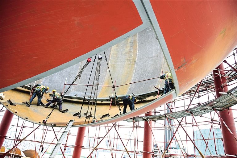 10月19日,鄂尔多斯市达拉特旗内蒙古荣信化工有限公司年产80万吨烯烃项目工地,施工人员正在进行厂房、设备安装作业。该项目总投资98.3亿元,采用最新专利工艺技术和先进节能技术,建成投产后,预计可实现年工业总产值66.70亿元,工业增加值20.79亿元,助推当地煤炭清洁高效利用与煤基化工全链发展。草原云·正北方网记者 王晓博 摄