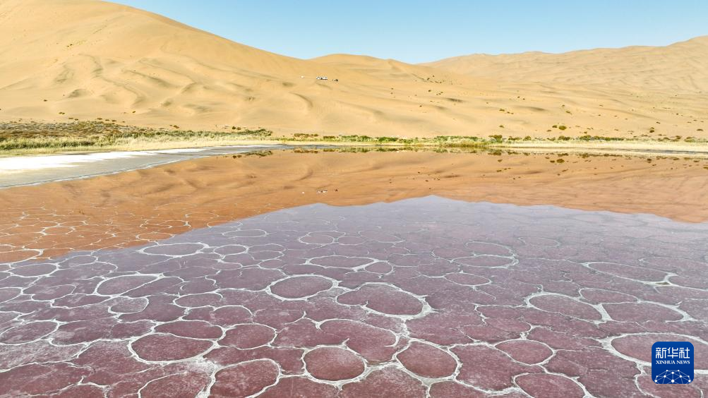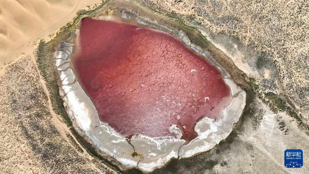 10月22日拍摄的巴丹吉林沙漠中的红海子(无人机照片)。