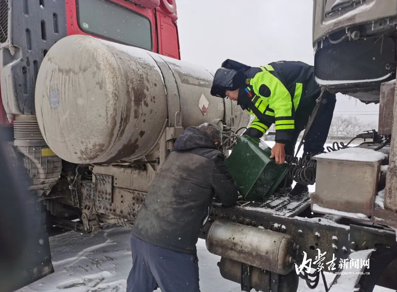 了解情况后,巡查人员迅速制定解决方案,考虑到就近的阿尔山服务区可提供热水,当即决定带领司机前往取水。抵达服务区后,巡查人员协助司机装好开水,一同返回故障车辆处。经紧急处理,冻住的油管成功解冻,车辆故障顺利排除。