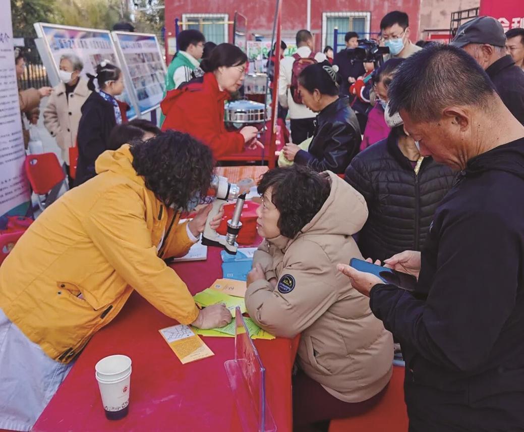 健康义诊服务区里,“银发群体”成了主角,包头市眼科医院的主任医师正为有需要的居民免费做眼科筛查,细致解答眼部健康疑问,给出专业指导。