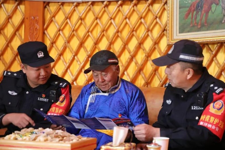 在专业防控之外,阿拉善盟公安系统还创新 “多方联动” 共治模式,充分发挥基层力量优势。“神舟漠警护卫队”“航天护卫队” 两支专业队伍主动下沉,与巴彦宝格德派出所民警一道,深入牧区挨家挨户开展普法宣传,讲解航天设施保护与公共安全知识,用通俗易懂的语言提升牧民群众的法律意识与责任意识。“这样的宣传方式更接地气,牧民们容易理解,也愿意主动参与到安保工作中。”“神舟漠警护卫队” 队员浩斯巴依尔说。
