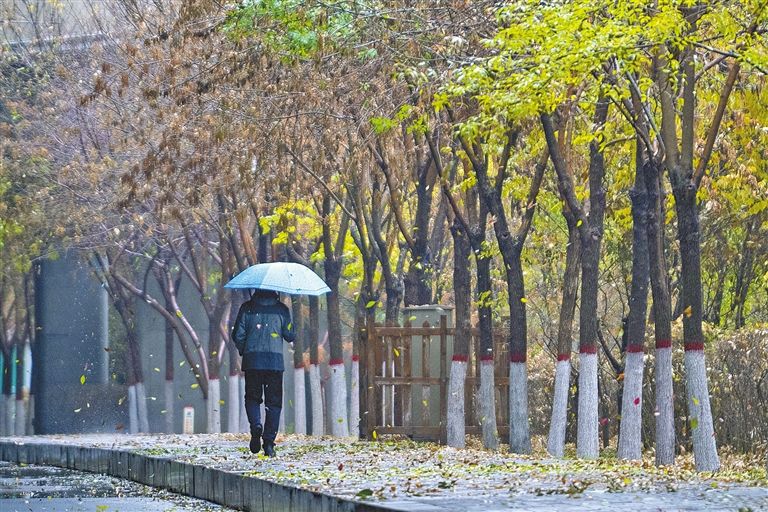 街道上落叶翻飞,寒风袭来,催促着草木加速褪去秋日的妆容。2025年立冬后的首场强冷空气,悄然为冬天拉开了序幕。草原云·正北方网记者 怀特乌勒斯 摄