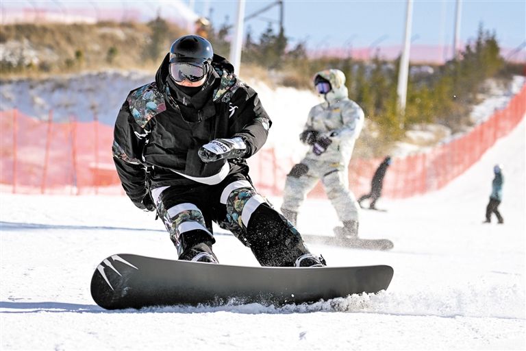 11月18日,滑雪爱好者在呼和浩特市马鬃山滑雪场滑雪。当天,马鬃山滑雪场开板营业,吸引了滑雪爱好者前来嬉雪,拥抱大自然,乐享冬日时光。草原云·正北方网记者 王晓博 摄