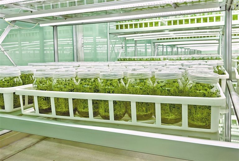 内蒙古商都马铃薯技术创新中心育种实验室培育的马铃薯种苗。