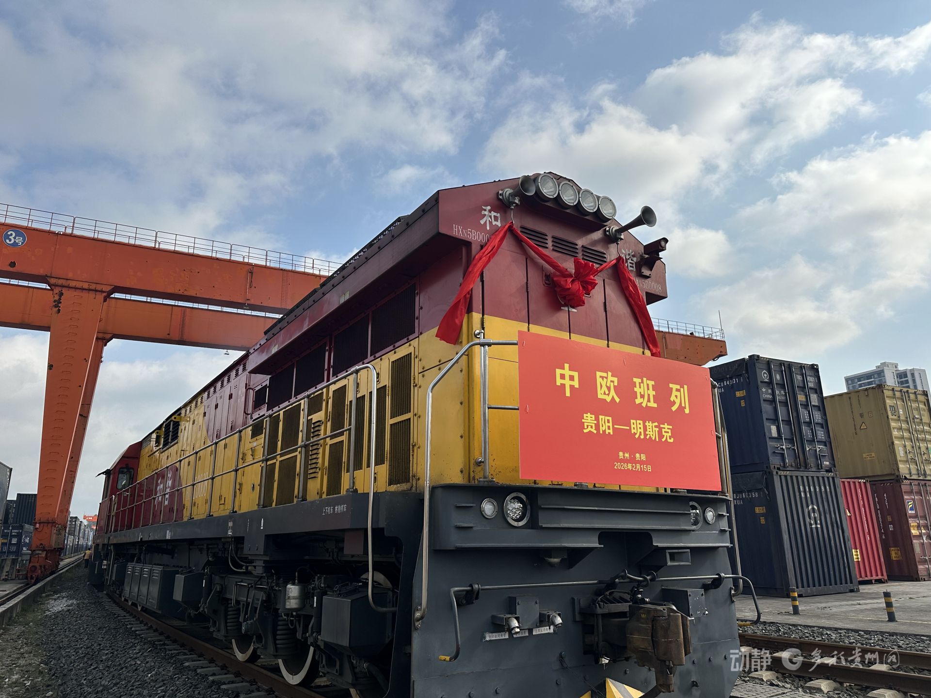 2月15日,贵阳国际陆港都拉营站,一列满载55个集装箱的中欧班列启程,超过2000吨、货值2490余万元的“贵州造”产品,将经阿拉山口口岸,15天后抵达白俄罗斯明斯克。