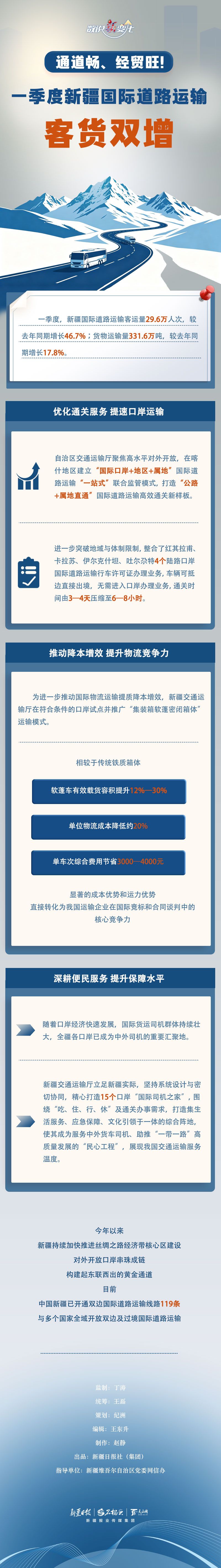 一季度,新疆国际道路运输客运量29.6万人次,较去年同期增长46.7%;货物运输量331.6万吨,较去年同期增长17.8%。一季度新疆国际道路运输客货运量双增,背后有哪些效率密码?今天的《数说“新”变化》一起来了解。