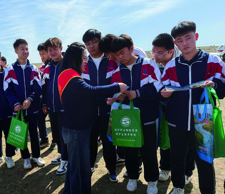 活动开始,兴和县林草局副局长张志勇结合涝利海湿地的生态环境,深入浅出地讲解鸟类与生态的共生关系。他指出,鸟类是湿地生态系统的关键组成部分,其种群数量与种类变化,直接反映着湿地生态的健康程度。随着涝利海湿地生态修复工作的推进,越来越多的珍稀候鸟在此驻足,这正是生态环境持续向好的生动体现。在场师生认真聆听,对鸟类保护的重要意义有了更直观、更深刻的认知。