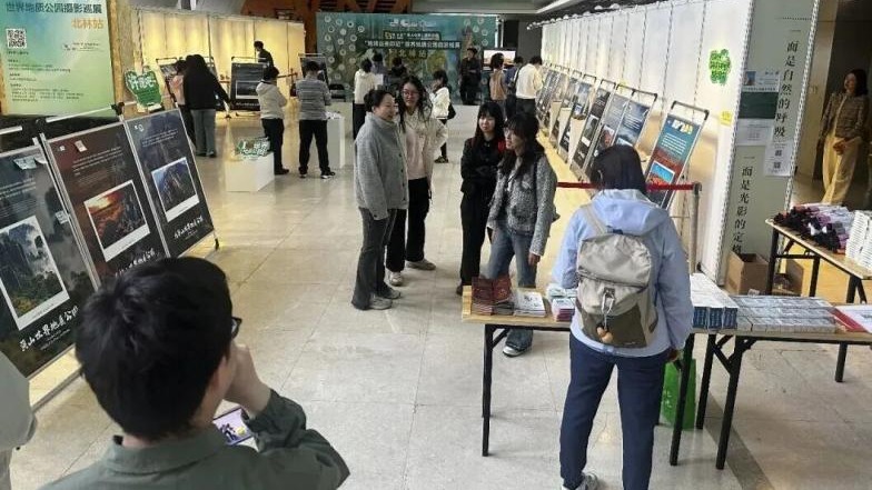 此外,现场还同步开展了地质公园专题摄影展和科普宣讲,系统展示了我国世界地质公园的保护理念和自然奇观。互动展区设置了丰富的体验项目,师生可近距离观察远古化石、亲手触摸巴丹吉林沙漠沙样、阅读各公园科普读物,在实物陈列与摄影作品的交融中,直观感受亿万年地质演变的壮美。