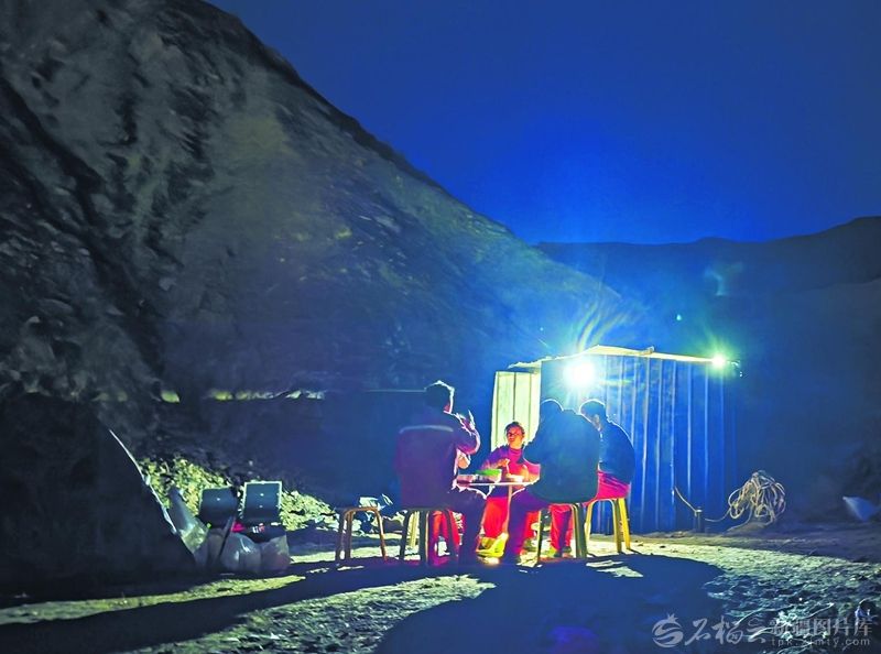 4月20日,吐西三维地震采集项目现场,工人魏正春完成当天的钻井任务后通过手机上报数据。