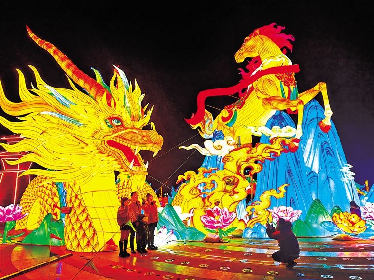 连日来,“龙腾马跃耀乌海”2026年新春主题灯展吸引人们前来打卡。乌海市今年的新春灯展以“一区一景、一景一韵”为特色,串联起四个区域,各种造型的主题花灯各具意趣,为人们带来兼具民俗韵味与视觉美感的节日文旅盛宴。草原云·正北方网记者 郝飚 摄